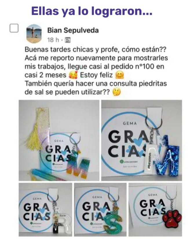 ayudar a que las mujeres puedan iniciar un emprendimiento con resina con una inversión muy baja.